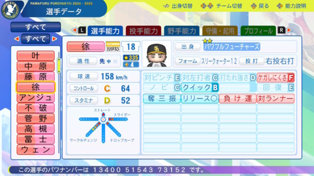 パワプロ2024 パワプロ2025 ソフトバンク 徐若熙 2026年