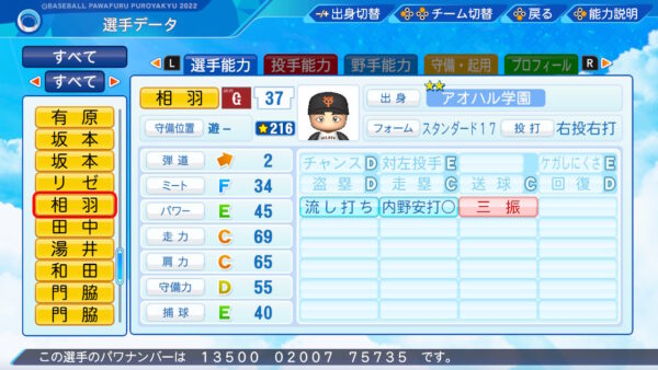 四球:3軍では34回を投げ13与四球(独自で集計したデータで確認できた試合のみ集計しています)