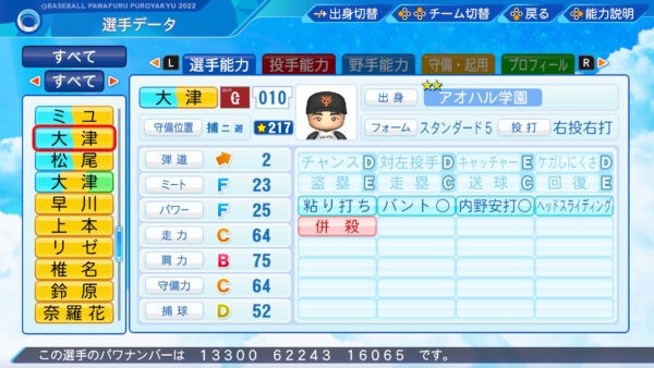 パワーヒッター:広角打法とどちらにするか迷いましたがパワーで運んでる印象を受けたのでパワヒにしました。ちなみにパワヒと広角の両存は最初から考えてません。強すぎるので