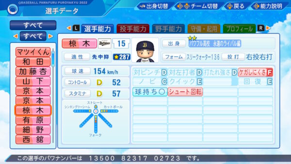 前回作成時よりチェンジアップの変化量を1減らしフォークを追加しています。