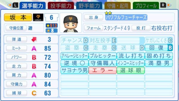 レオス監督は当初ショートで育成する予定だったが、2年目新入生に転生宮本慎也を引き当てたことでセカンドでの育成に変更された。