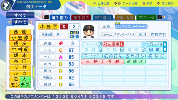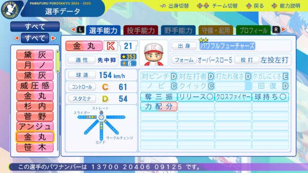 威圧感:今年のピッチングスタイルと成績ならふさわしいと判断。というかデフォが弱いと思う。