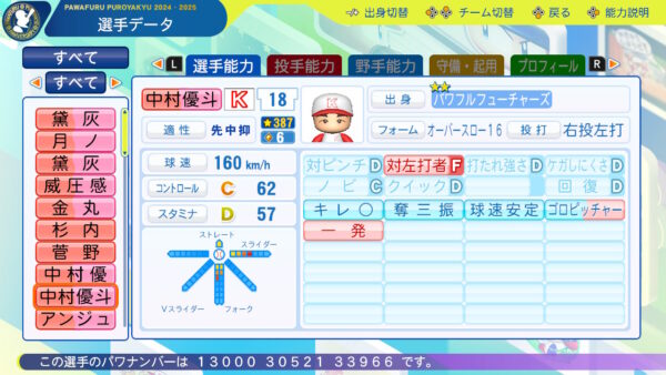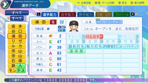 パワプロ2024では名前の「惺」がないので「裕星」にしております。
