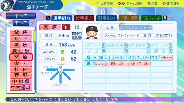 守備職人:2015年はゴールデングラブを獲れませんでしたがもうこの時点で滅茶苦茶上手かったですからね。個人的に坂本勇人の守備全盛期は2015年だと思っています。エラー:11失策で結構タイムリーエラーとかしてた気がしますが、なんかエラーを付けるのは違う気がしたんですよね。なので代わりに捕球を下げて調整いたしました。