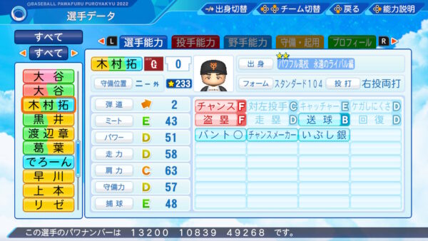 キャラメイクでは美少女擬人化のようになりスタート。天宮こころと共に走力を鍛え神速高校の上位打線に君臨。