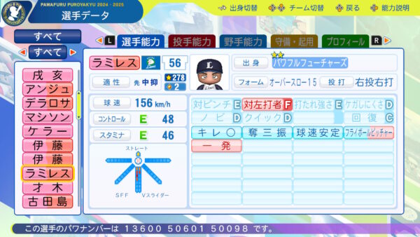 基本的に2022年に作成した時の鈴木尚広と能力値は一緒です。