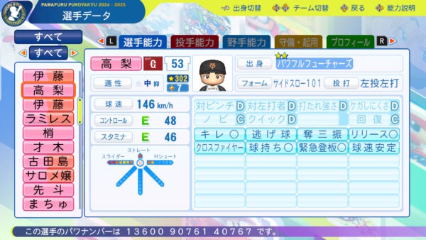 送球B:ルーキーに送球Bはどうなんとも思いましたが、石伊選手のスローイングならそれでも構わんかとなったので最終的には採用。