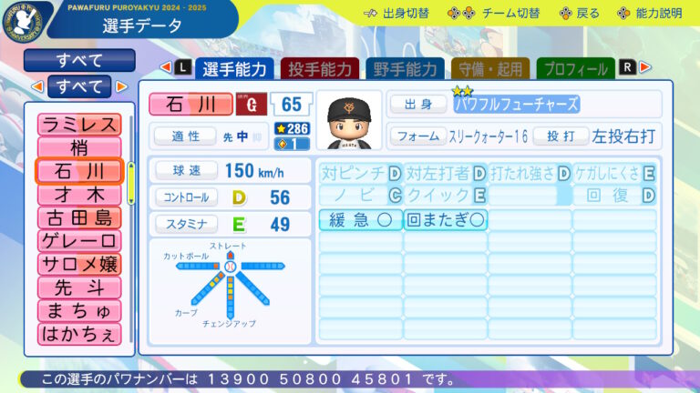 基本的にはデフォですが先発適性と回復をDにしています。