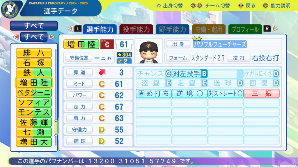 内外野満遍なく守れるユーティリティを持っているが1軍昇格後は主にファーストに定着。