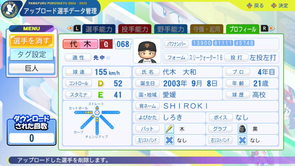 1軍登板を果たした2年目はシロキボールと呼ばれるややスライドするボールを武器に使っていた。