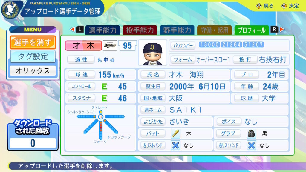 オリックスで一番好きな選手なのでケガに気を付けてチームに欠かせない投手になれるようになってほしいです。