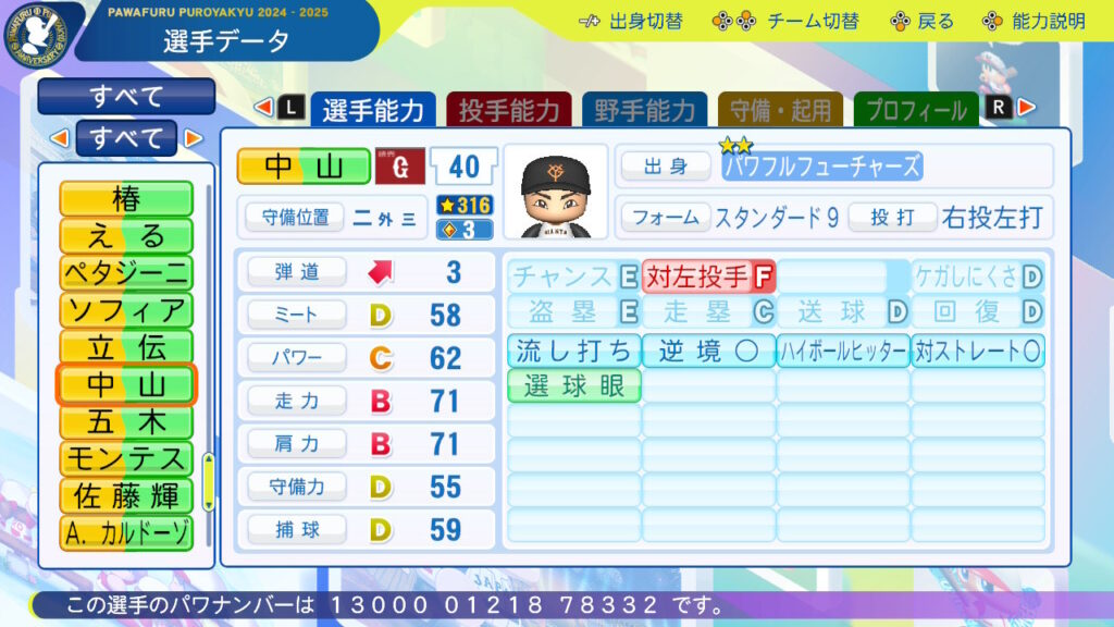 外野守備は昨年まで守った経験がない故、危うい場面もあるがクッション処理や守備範囲などで阿部監督からも称賛されるなどセンスを見せ付けている。