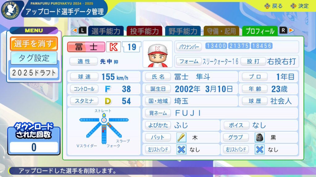 奪三振:2025年公式戦の奪三振率は7.36も大学時代の実績とプロでは三振を多く奪える投手になると判断。