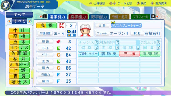 高校3年の夏は大会記録となる66奪三振を取るなどキレのある変化球が武器である。