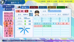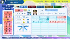 チーム屈指のパワーを会得しチャンスFだがそのチャンスの場面で逆方向に153mの特大ホームランを放つなど驚愕のパワーを持つスラッガーとなった。