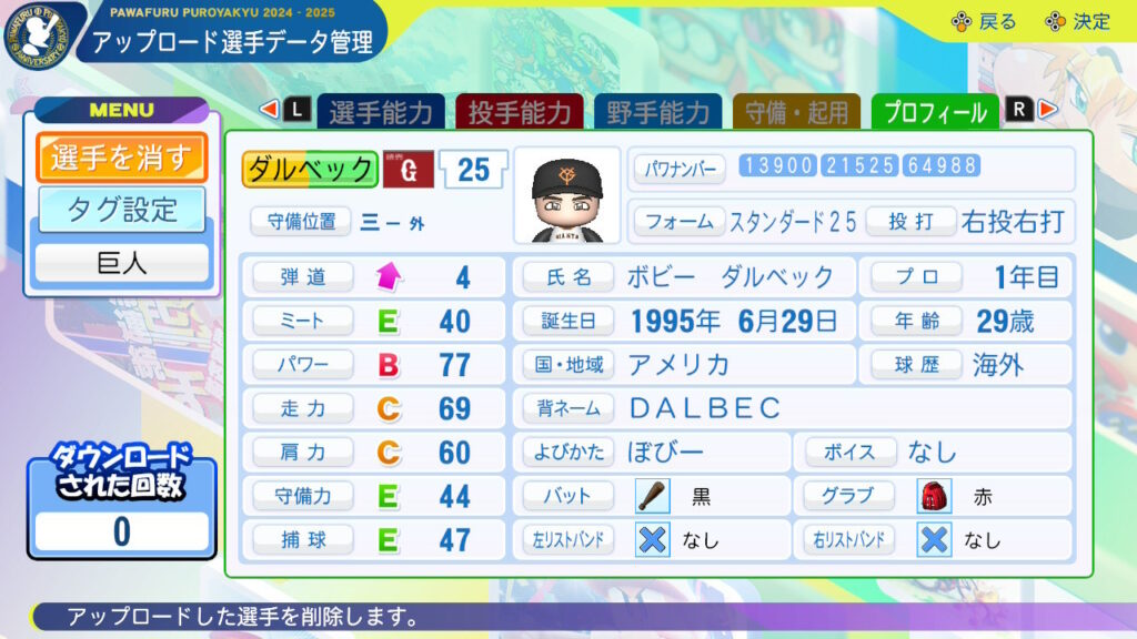 長い時間かかりましたがここまでの巨人新外国人の作成が完了しました。