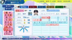 スタミナ:元々先発では優秀なイニングイーターでしたし、デフォルトのスタミナDはリリーフだった事を考慮してだと思うので、先発に戻るだろう今年はスタミナの数値を上昇させました。これでも控えめなんやで。