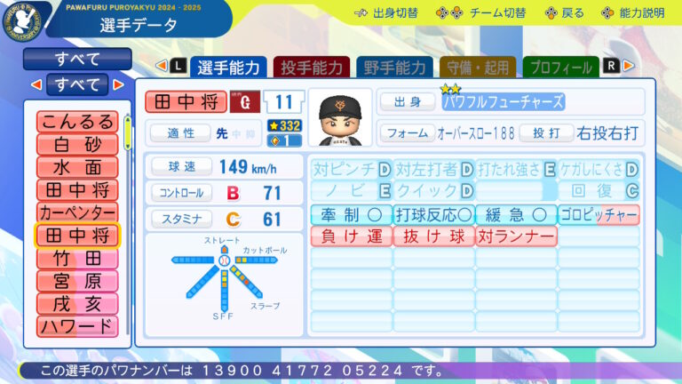 対ランナー×:ランナー1塁の被打率.357(14-5)四球:今シーズン18.2回で与四球僅か2なので削除、コントロールも大幅に上げています。
