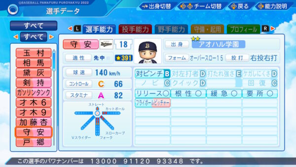二俣選手を作る為にデータサイトと2日間睨めっこしてました。