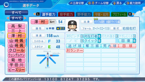 1年目の春季キャンプでは先輩の投手陣達から自身の出身である三菱パワーを捩りパワーと呼ばれていた。