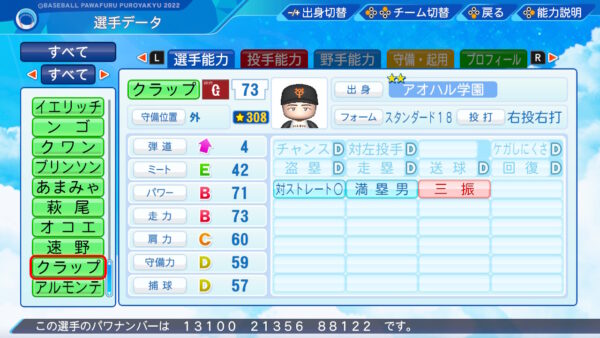 2022年は序盤苦しみマイナー落ちの屈辱を味わうが後半戦から復調し外野のレギュラーに定着した。
