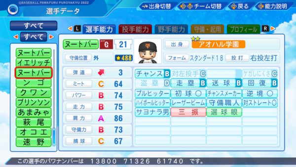 パワーヒッターと称される長打力を有しており2022年は12本塁打75打点を記録している。