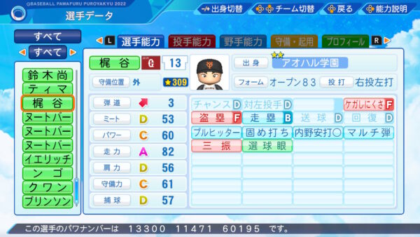 奪三振:2021年38回37奪三振。キレ◯よりこっちの方がいいかなと思いました。