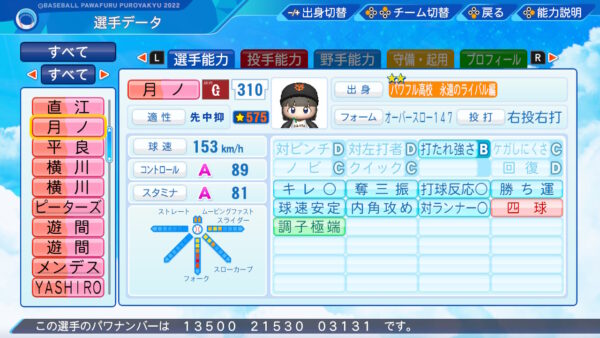実はまだストレートの打率だったり変化球の打率だったりそういうデータも持っていましたが初めての試みという事もある他、データも不十分なので温存させていただきました。