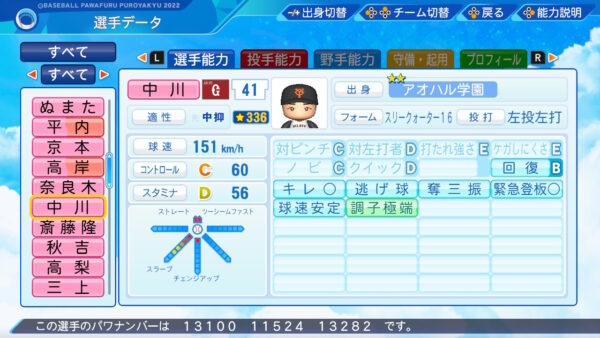 変化球はカーブ・スライダー・チェンジアップなどを使う。