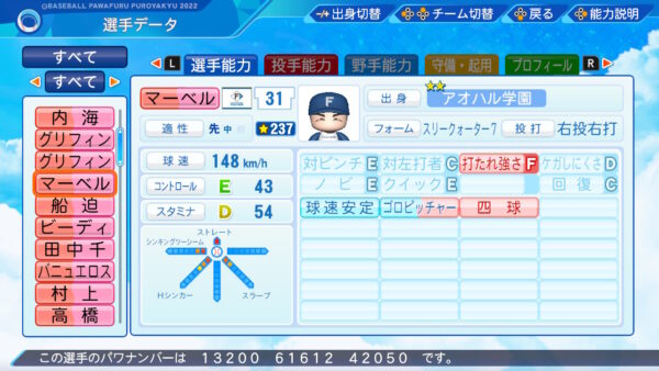 弱体化はあまり好きではないのですがデフォだと村上が無双しヤクルトが大体優勝するので今回ナーフさせていただきました。まあナーフしたとはいっても下の画像ぐらい打つんですけどね。