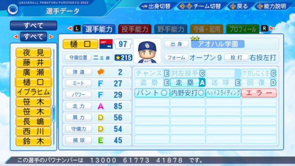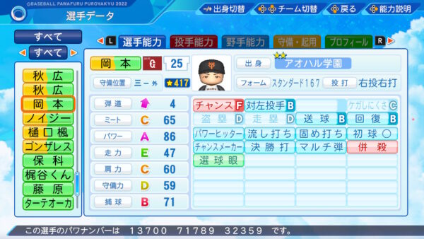 日本や世界を代表する投手との投げ合いに強い傾向があり昨年6月には完全試合を達成した佐々木朗希に投げ勝った他、サイヤング賞を獲得したバリバリのメジャーリーガー、トレバー・バウアーに来日初黒星を付けるなどここ一番に強い一面がある。